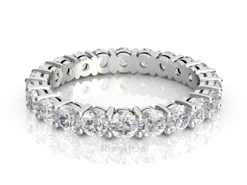 | This design is an 18 karat gold ladies' wedding ring. There is about 2.2ct diamond set full hoop the shank.