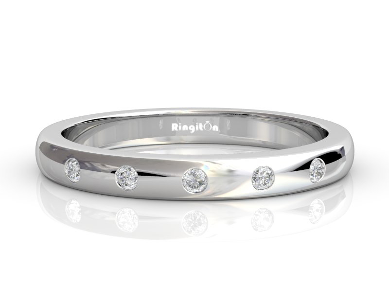 | This design is an 18 karat gold ladies' wedding ring. There is about 0.05ct diamond set 1/4 way the shank.