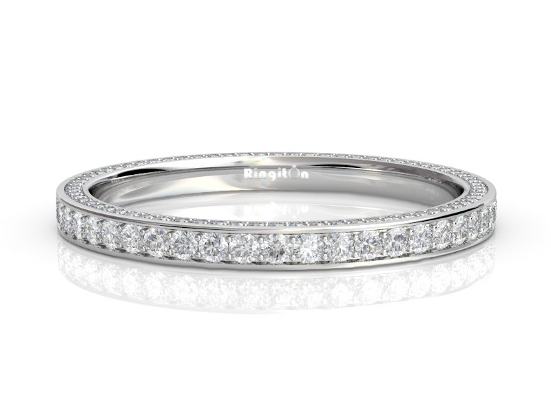 | This design is a platinum 950 ladies' wedding ring. There is about 0.9ct diamond set full hoop the shank.
