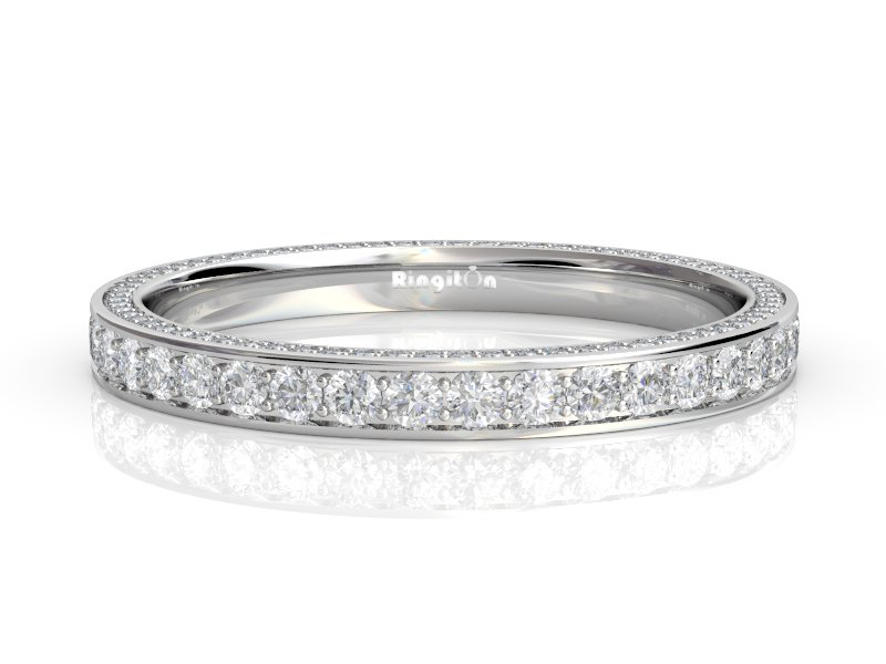 | This design is a 9 karat gold ladies' wedding ring. There is about 1.0ct diamond set full hoop the shank.