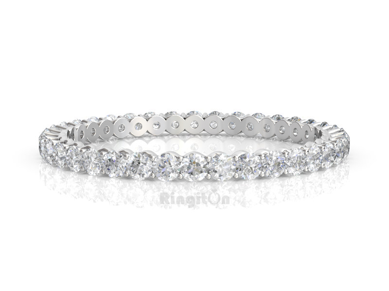 | This design is an 18 karat gold ladies' wedding ring. There is about 0.75ct diamond set full hoop the shank.