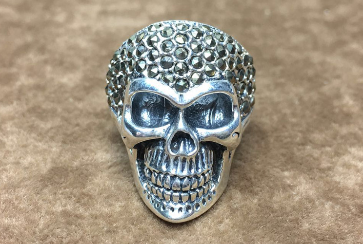| This vintage Men's Punk Gothic Biker Skull ring is made out of solid sterling silver with marcasite on the skull.
