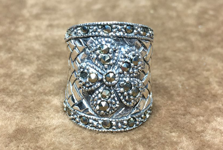 | This vintage silver ring is made out of solid sterling silver with marcasite.
