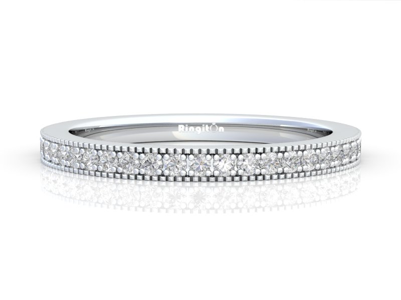 | This design is an platinum 950 mill-grain micro pave setting ladies' wedding ring. There is about 0.3ct diamond set 3/4 way down the shank.