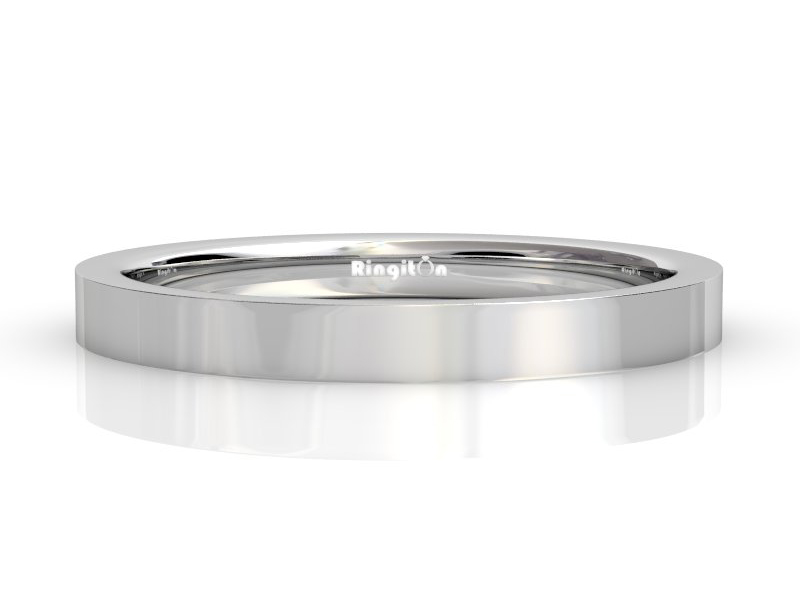 | This design is an platinum 950 flat plain ladies' wedding ring.