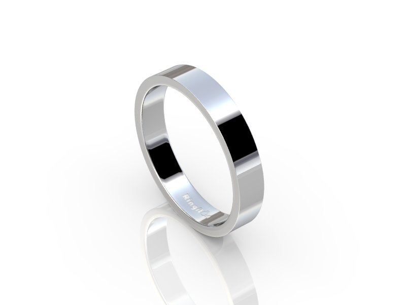 | This design is a platinum 950 flat plain high polished men's wedding ring.