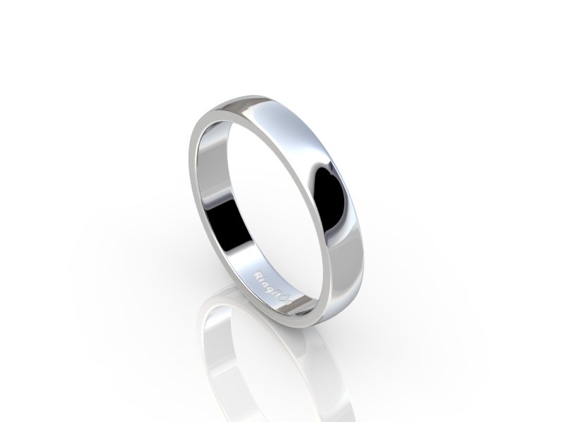 | This design is an 18 karat gold flat slightly round plain high polished men's wedding ring.